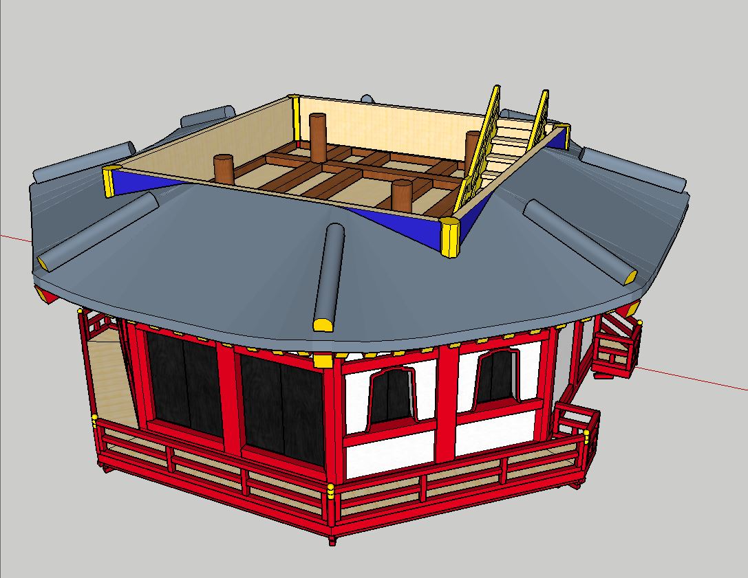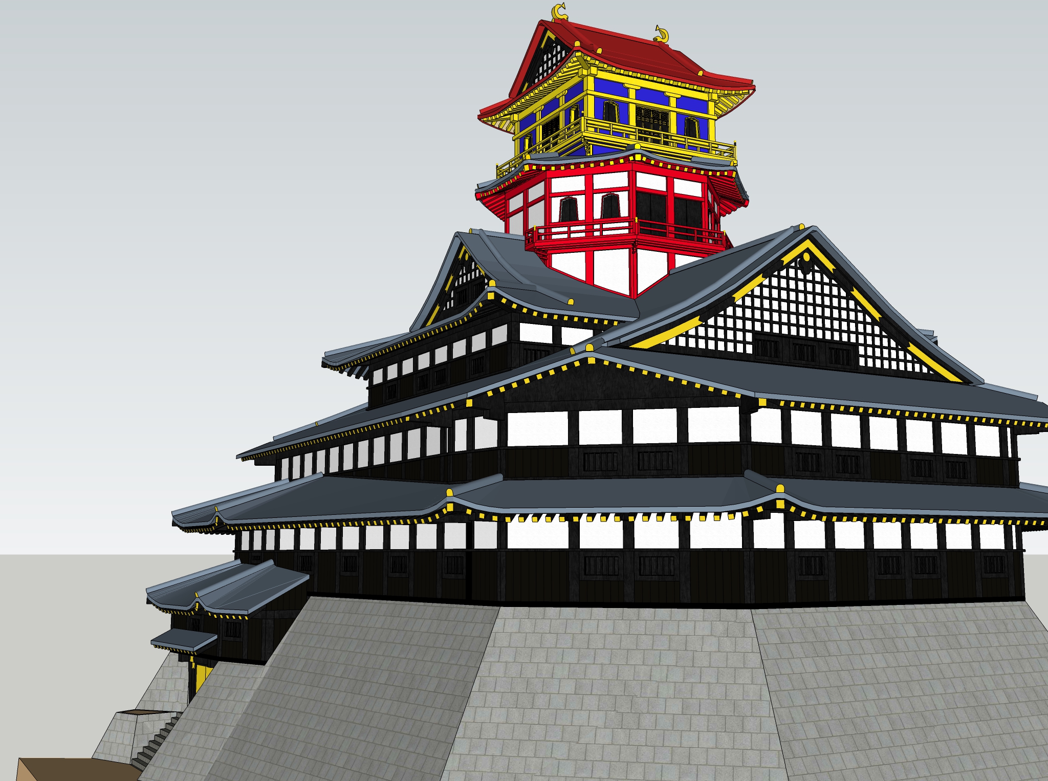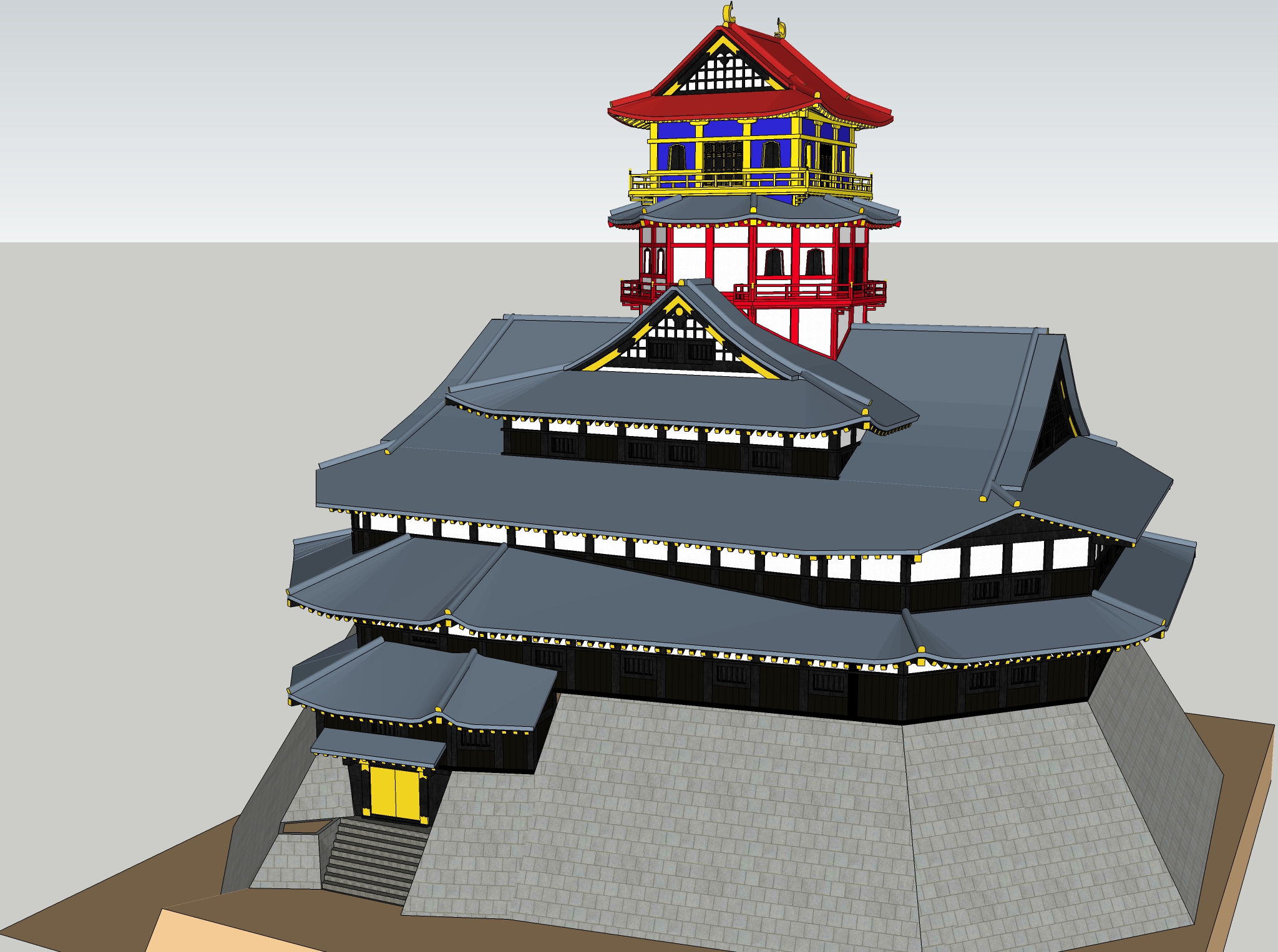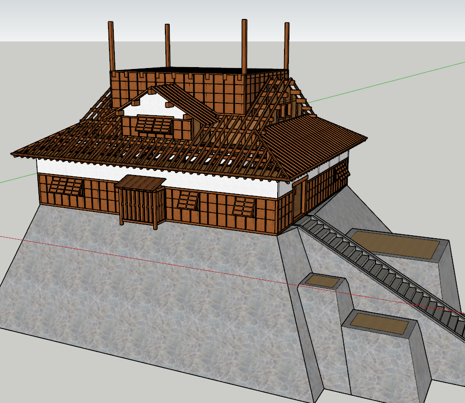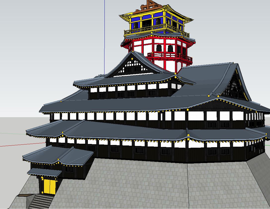 ちなみに、このときは一階の底面を基準(原点の高さ)として作成したのですが、完成したときに原点の高さに影ができてしまうので失敗でした。石垣の底面を原点の高さに合わせるべきでした(完成してから修正)。