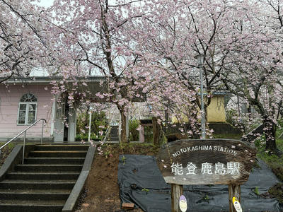 能登鹿島駅が有名ですが、ほかの駅も桜が多くて、往復乗車を堪能できました。