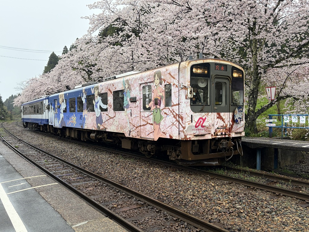 穴水行きの列車を見送ったあと、駅の桜を堪能し、七尾行きの列車に乗って往復。