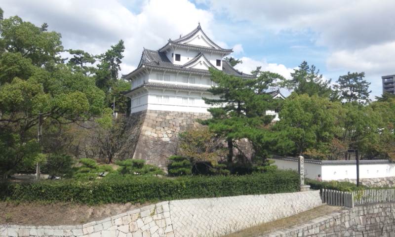 櫓は新幹線ホームから見るのがベストなのですが、ケータイのカメラでは、↓このくらいが限界です。櫓と天守がすべて見えるんですけどねぇ。。。(望遠レンズがないと撮影は苦しい)