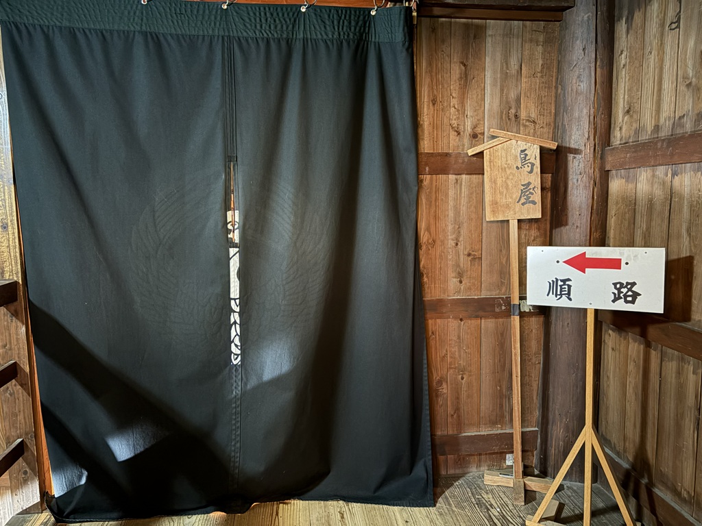 鳥屋のほうを振り返るとこんな感じ。鳥屋の幕がいいですね。