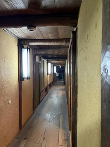 さて、ステージの裏に行くと楽屋が並ぶ通路があります。