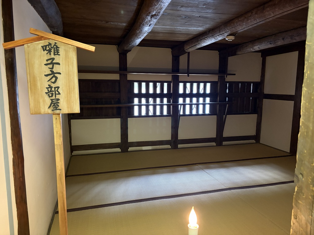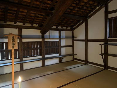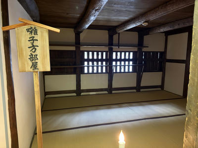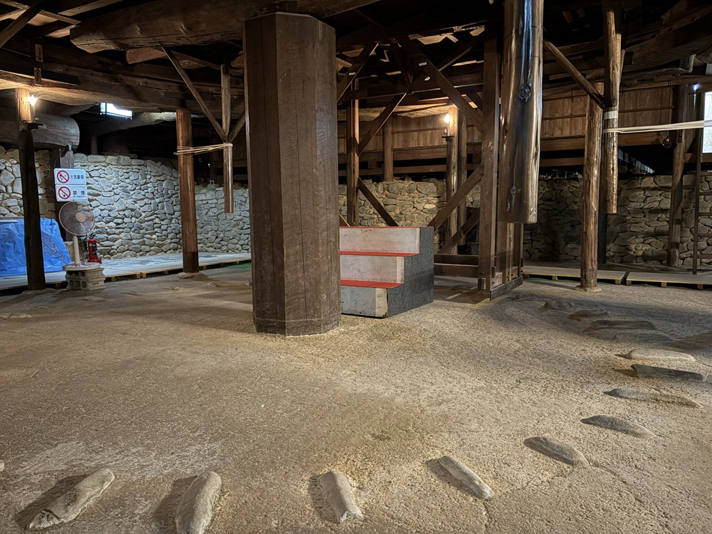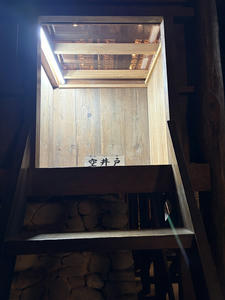 ちょっとわかりにくい写真ですが、空井戸の手前に奈落へ下りる階段が数段あります。空井戸の上部は透明な板で塞がれていました(実際に使うとき以外は蓋をするのでしょう)。