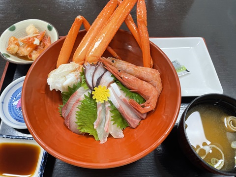 カニの季節ではありませんが、美味しい海鮮も食べられたらいいなぁと思っていたら、向かいの道の駅で美味しい海鮮丼に出会いました。