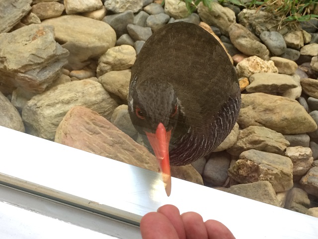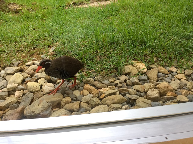 ヤンバルクイナの習性から、見学施設には 1 羽しかいないのですが、動きを見ているだけで飽きないです。^o^