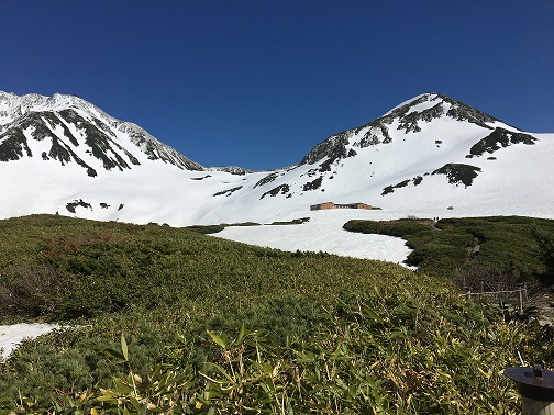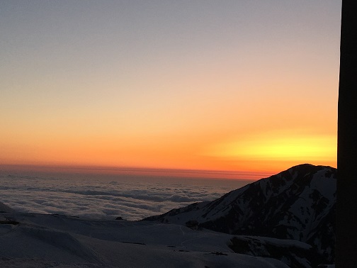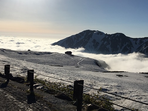 朝はすっかり雲がなくなり、遙か下に富山平野がうっすらと見えました。