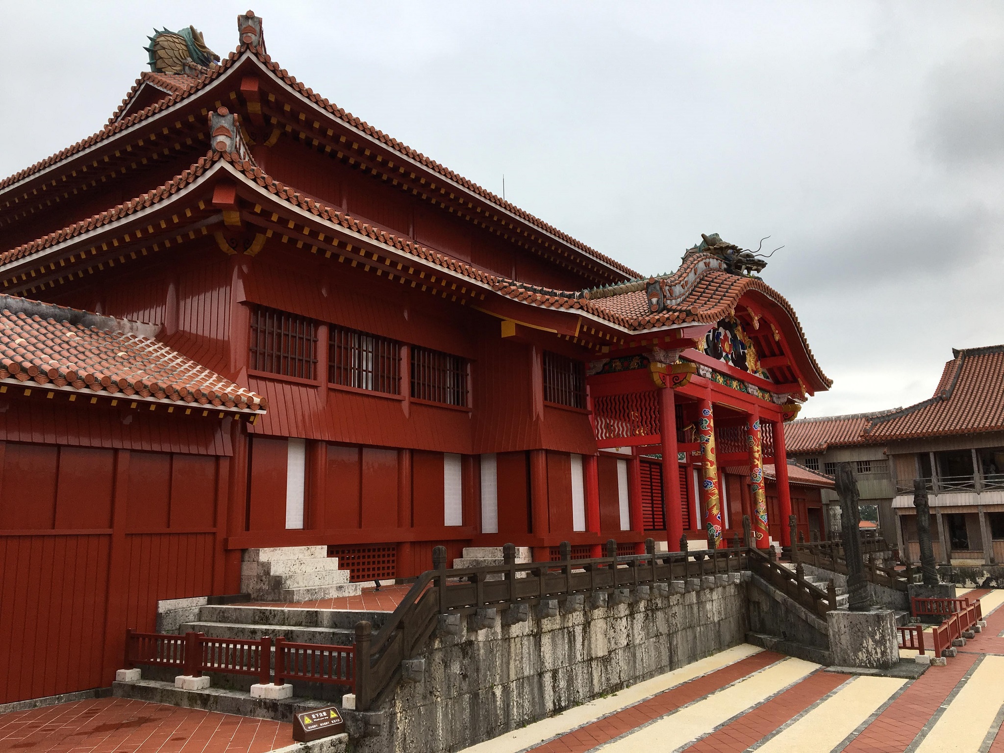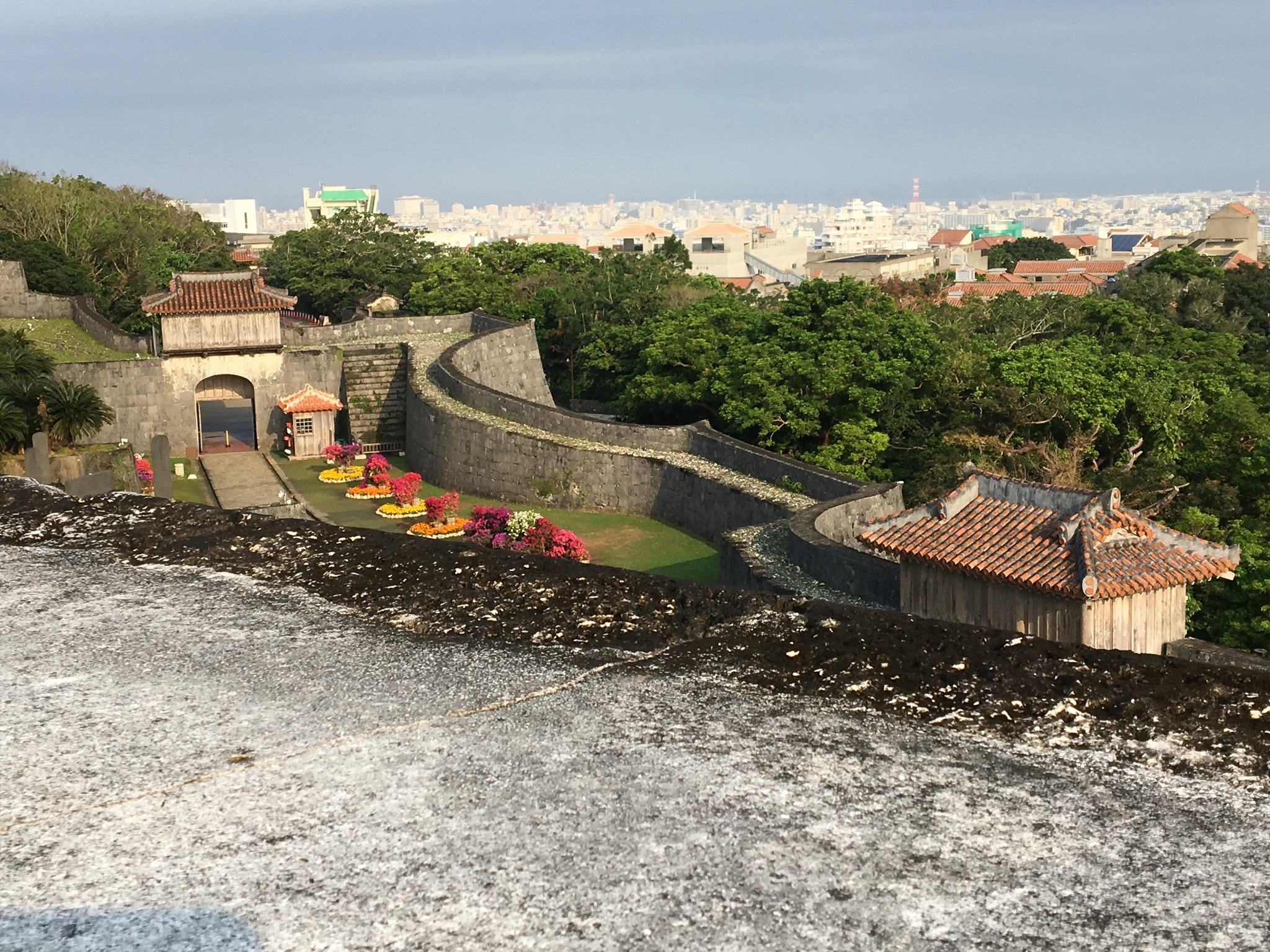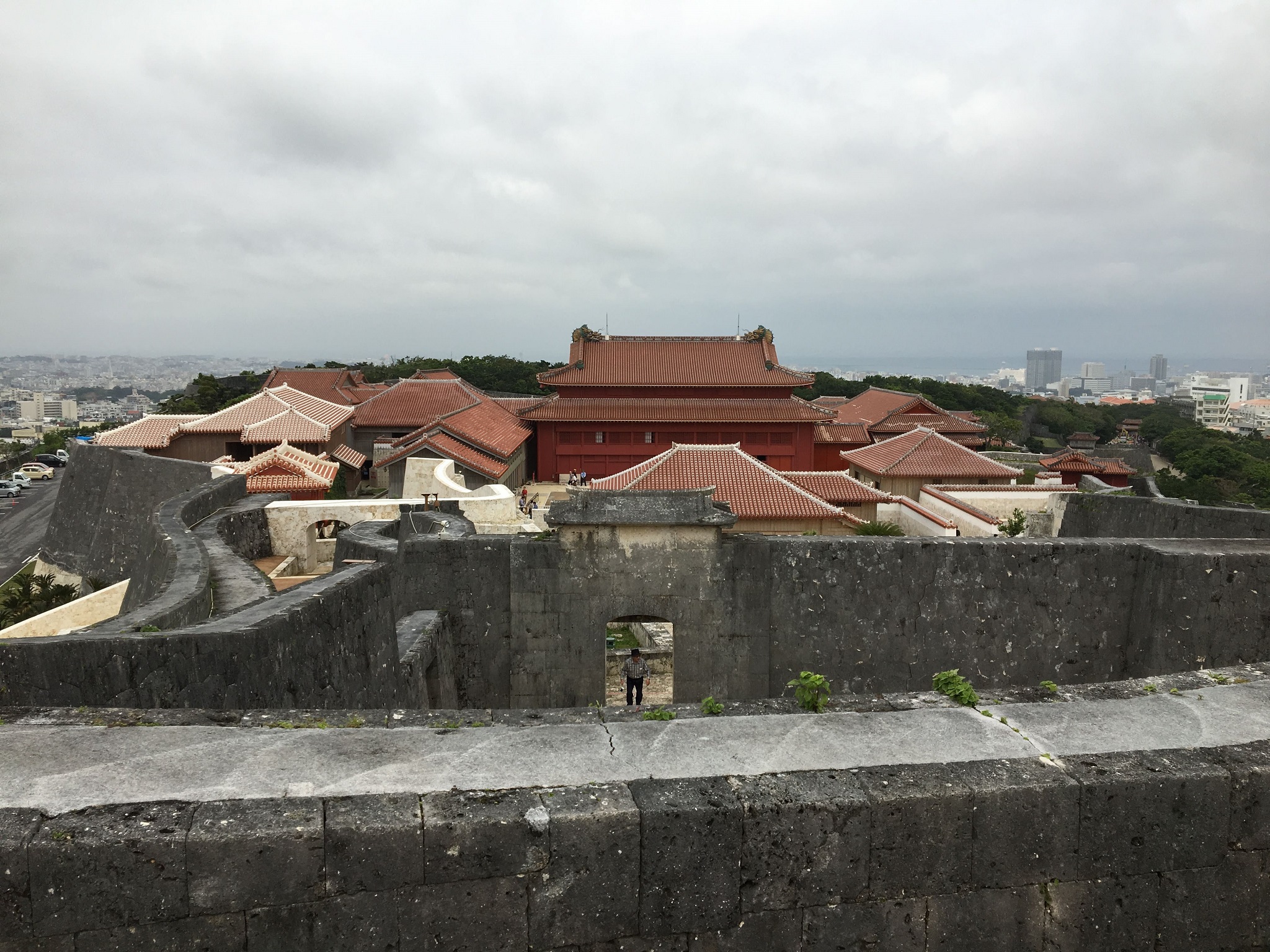いい撮影スポットが見つからなかったのですが、高台から、正殿などの建物群を見渡すことができました。