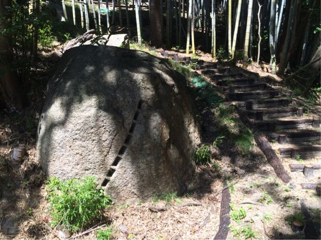 ↓この石(というより岩)は、上の方に矢穴が残っていますね。