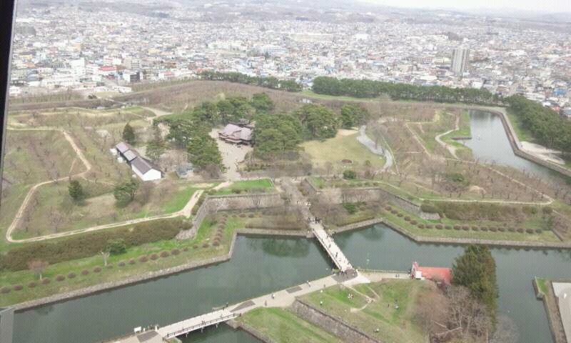 僕達は日本百名城二周目の旅を始めました。記念すべき第1城は五稜郭です。五稜郭タワーからその全貌がよく見えます。