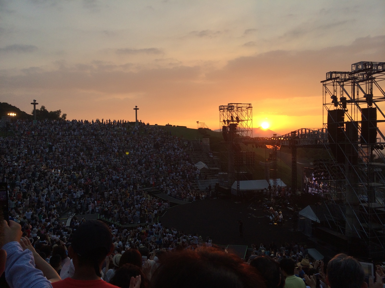 前回失敗した経験から、今回は小田さんの撮影を諦め(距離的に無理 ;_;)、会場全体の雰囲気を記念撮影することにしました。ちょうど夕日が綺麗な時間で良かったです。