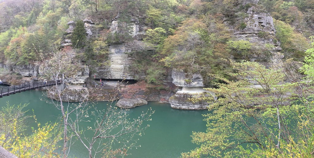 湯野上温泉から1駅戻って、塔のへつりに行きました。