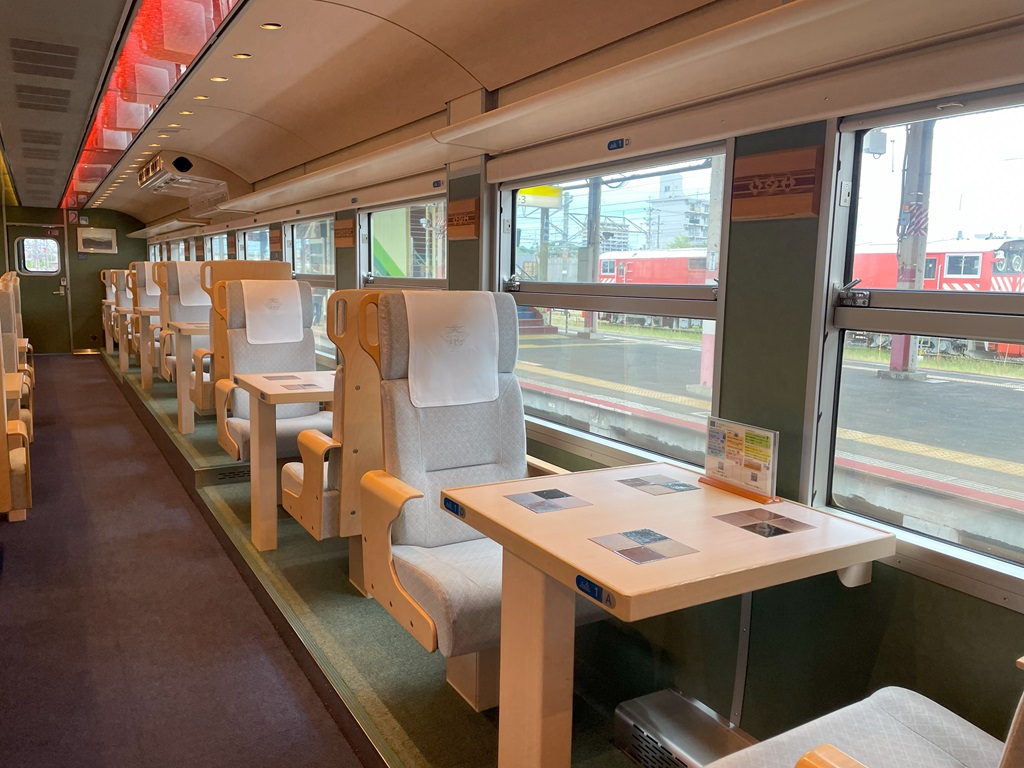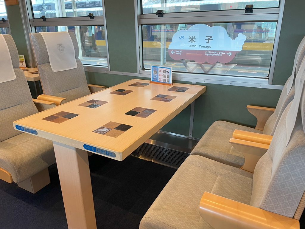 2号車の宍道湖側のボックス席。