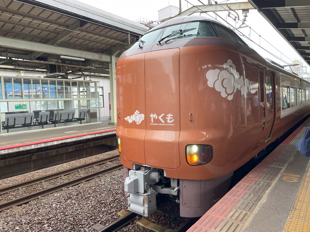 途中の松江駅では10分以上停車。そこで新型やくもに遭遇(焦って撮ったので画角がイマイチ。^^;)。