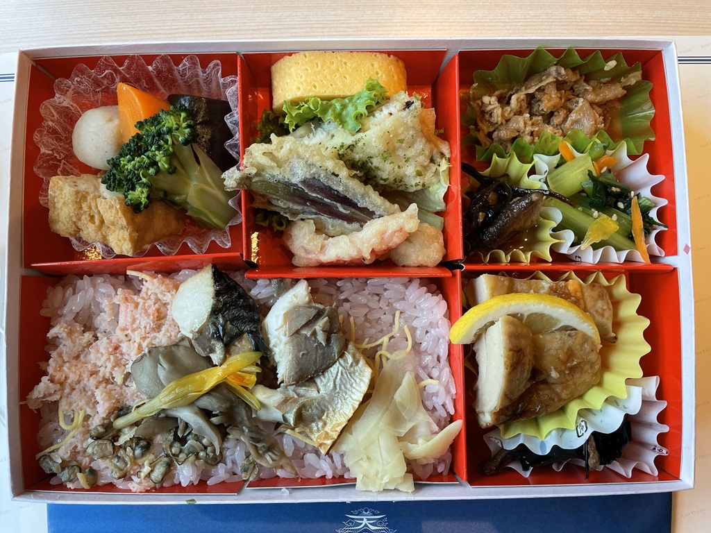 ただし、逆向きに走り出すのは13時頃ということで、帰りのあめつちで食べるはずのお弁当をここで食べることになりました(帰りの普通列車でお弁当を渡されても困るなあと思っていたので、これは良かったです)。