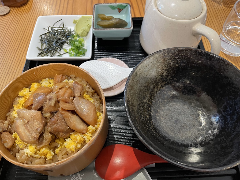 鶏めしが有名だそうで、その鶏めしをだし茶漬けでいただくものです。